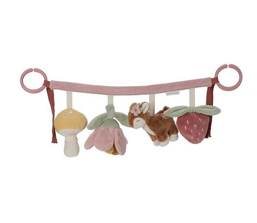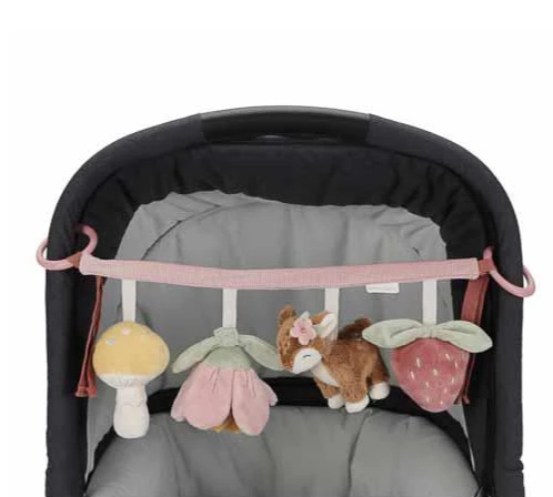 Rammel, piep, knisper. Ontdek de vier schattige speeltjes uit de Fairy Garden collectie aan deze wagenspanner. Het lieve hertje, kleurrijke bloem, paddenstoel en aardbei kunnen niet wachten om je te vermaken tijdens een wandeling. Geef je kindje een zintuiglijke ervaring met deze kleurrijke wagenspanner, die de ontwikkeling van de hand-oogcoördinatie stimuleert terwijl jullie onderweg zijn. Bevestig de wagenspanner eenvoudig aan een kinderwagen. WAARSCHUWING: Om te voorkomen dat het kind verstrikt raakt, en zich bezeert, verwijder dit speelgoed wanneer het kind op handen en voeten begint te kruipen. Te monteren door een volwassene.