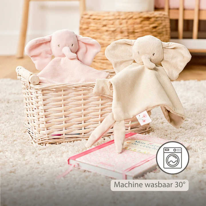 - Zacht knuffeldoekje in de vorm van een olifantje in roze ribfluweel