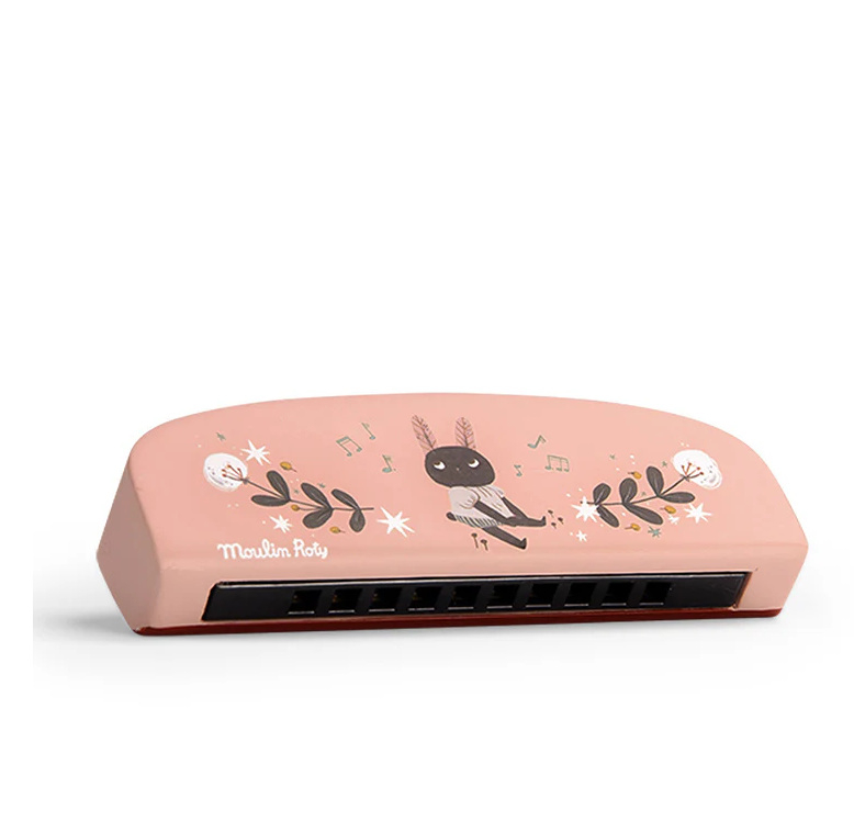 Mooie houten mondharmonica uit de serie 'Après la pluie' van het Franse merk Moulin Roty.