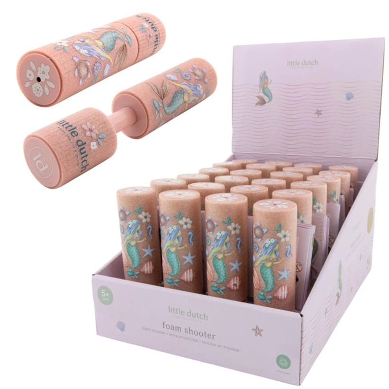 Volop waterpret met deze Little Dutch Dreamy Mermaid foam shooters. Het waterpistool is 15 cm lang, en spuit wel tot 7 meter ver. Uitgevoerd in het vrolijke Dreamy Mermaid thema. Gepatenteerd systeem