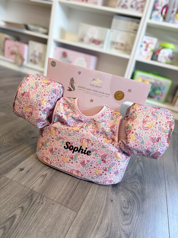 Deze Little Dutch Dreamy Mermaid Paddle Pall is een gepatenteerd zwem- drijfvest met mouwtjes en verstelbare gesp. Perfect voor gebruik in en om het water. Het zachte en duurzame polyester materiaal is fijn om te dragen op de huid. Dit product is een hulpmiddel en dient altijd gebruikt te worden onder toeziend oog van een volwassen persoon. Wordt geleverd op card met eurolog. Geschikt voor 15-30kg. Adviesleeftijd 3-6 jaar.