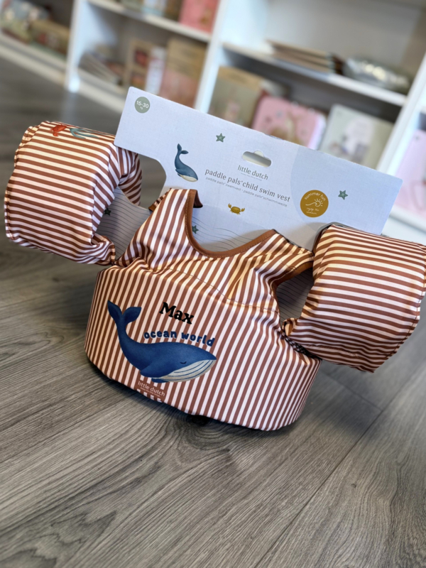 Deze Little Dutch Ocean World Paddle Pall is een gepatenteerd zwem- drijfvest met mouwtjes en verstelbare gesp. Perfect voor gebruik in en om het water. Het zachte en duurzame polyester materiaal is fijn om te dragen op de huid. Dit product is een hulpmiddel en dient altijd gebruikt te worden onder toeziend oog van een volwassen persoon. Wordt geleverd op card met eurolog. Geschikt voor 15-30kg. Adviesleeftijd 3-6 jaar.