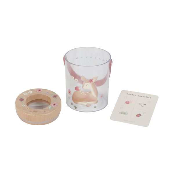 Laat je kindje de natuur van dichtbij ontdekken met het Little Dutch Insectenpotje - Fairy Garden! Dit schattige transparante potje is ideaal voor kleine onderzoekers die insecten, blaadjes of andere kleine vondsten willen bestuderen. Versierd met een lief hertje en bloemen uit de Fairy Garden-collectie, maakt dit potje elk avontuur nog magischer.
