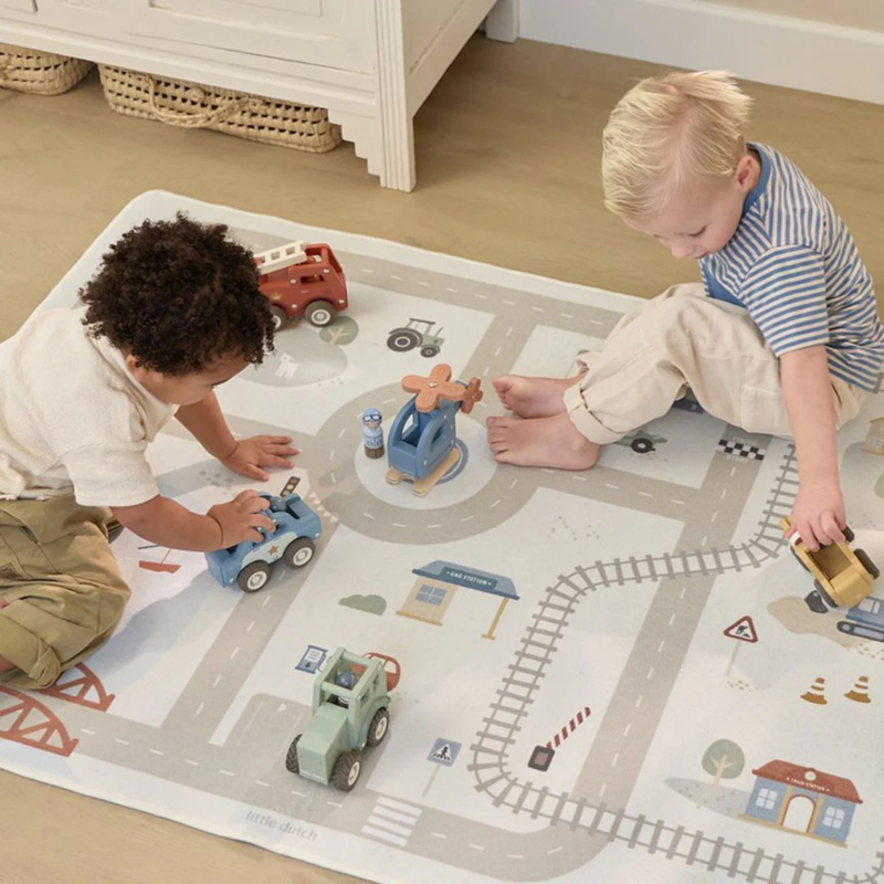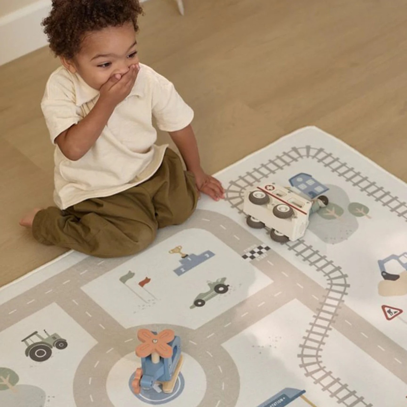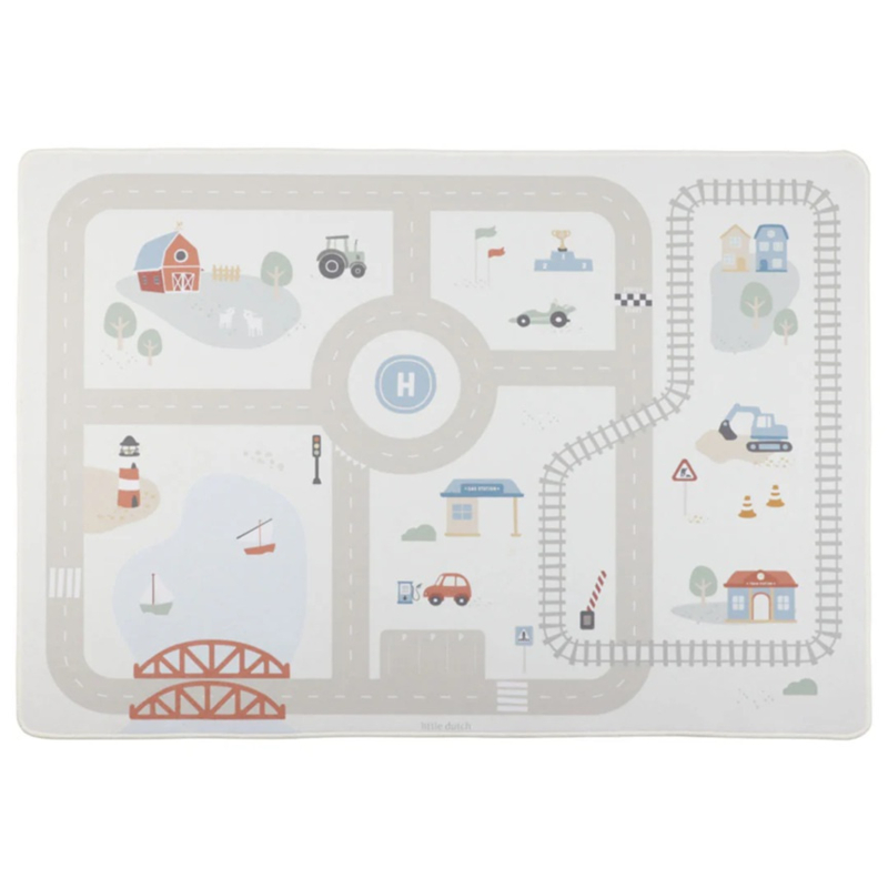 Stap in een wereld vol avontuur met dit zachte speelkleed in warme, neutrale tinten. Ontdek samen met je kindje de verschillende scènes, zoals wegen, treinen en waterpartijen. Perfect om te combineren met Little Dutch voertuigen voor eindeloos speelplezier. Gemaakt van comfortabel materiaal en ideaal voor urenlang ontdekken en spelen.