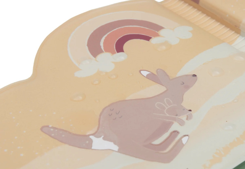 Eindeloos speelplezier in bad met dit magische boekje! De witte pagina’s lijken eerst leeg, maar zodra ze nat worden, verschijnen er vrolijke kleuren en vormen. Het boekje blijft drijven en is gemaakt van zacht materiaal dat fijn in kleine handjes ligt. Zo ontdekt je kindje telkens iets nieuws, zowel in bad als onder de douche.